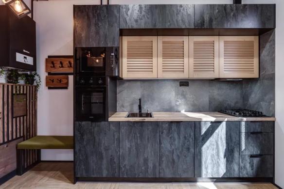 Стильна і оригінальна квартира з дизайнерськими меблями з натурльного дерева у поєднанні з металом. Багато озеленення, що додає затишку.