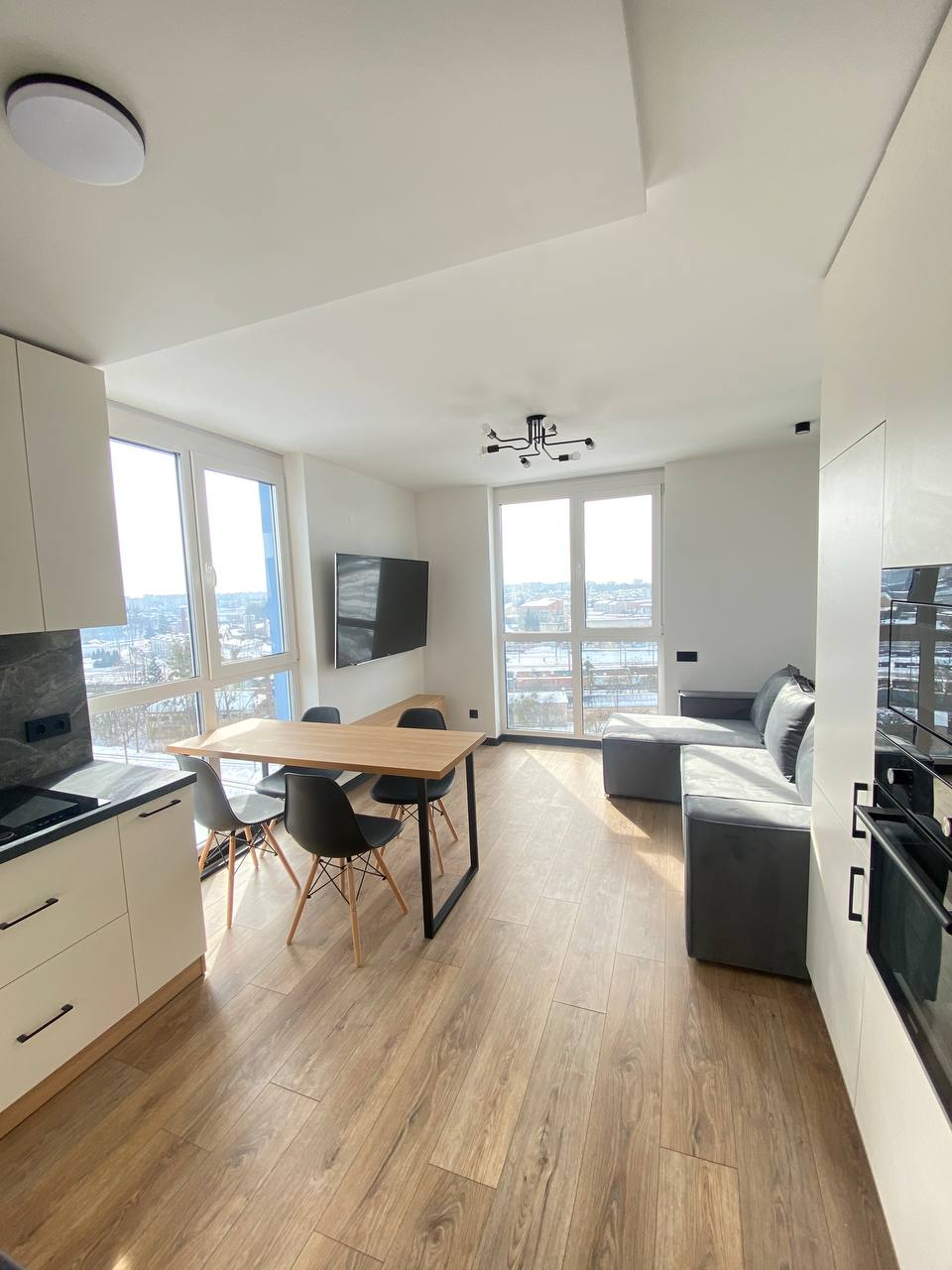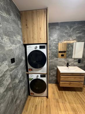 В квартирі повністю зроблений ремонт, обставлена меблями та всією необхідною технікою (вбудований холодильник, посудомийна машина, індукційна плита з витяжкою, духова шафа, мікрохвильова піч, три смарт телевізори, пральна машина, сушильна машина та бойлер на 100л)